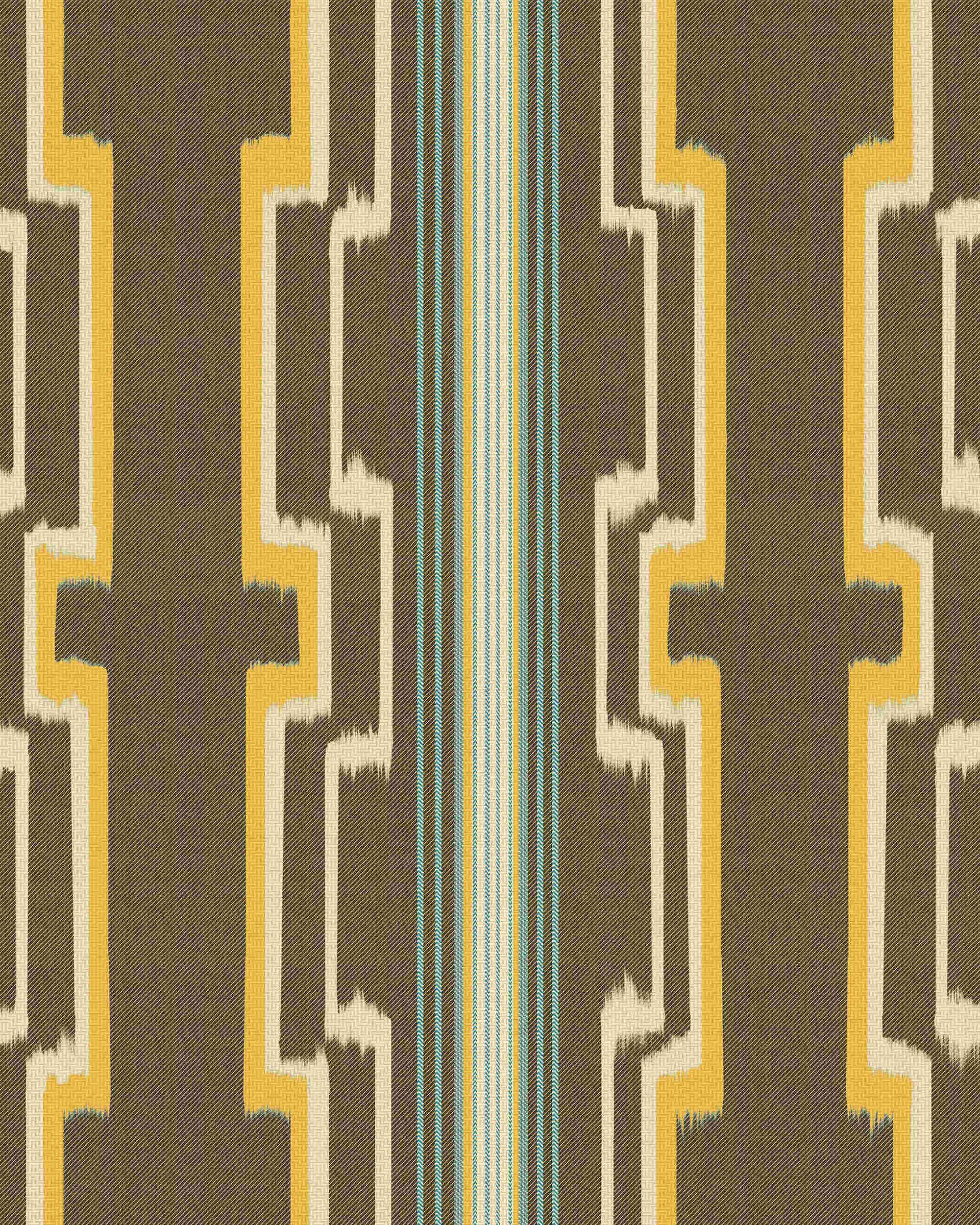 Taking its cues from the fortified Saxon village of the same name, where a Gothic church sits proudly as a UNESCO World Heritage site, SASCHIZ captures centuries of multicultural craft. Forest greens accented with golden yellows and cream recall the ancient ikat technique and hidden inside bold stripes, referring to architectural details of fortified churches built by German-speaking Transylvanian Saxons in the late 15th century. Available in the original palette, paired with Brown and Carrot tones.